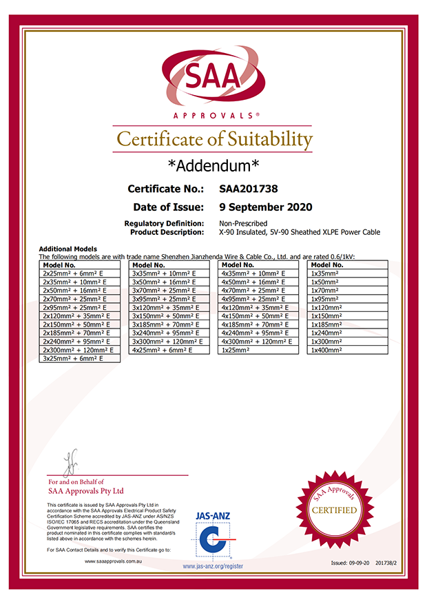 深圳建圳達(dá)電線電纜有限公司,成立于2000年,是一家電線電纜制造商,我們通過(guò)了世界各地不同市場(chǎng)的多數(shù)認(rèn)證,如:CCC、RoHS、CB、SAA、TUV、VDE、PSE、BPS、UL、CSA。我們根據(jù)定制產(chǎn)品不斷更新新的認(rèn)證。經(jīng)過(guò)數(shù)十年的發(fā)展,我們與來(lái)自世界各地的客戶建立了長(zhǎng)期的合作關(guān)系。我們?cè)?jīng)是菲律賓機(jī)場(chǎng),,柬埔寨的電力站,美國(guó)的醫(yī)院,工廠,埃塞俄比亞的水電站項(xiàng)目。我們是一家值得信賴的電線供應(yīng)商。